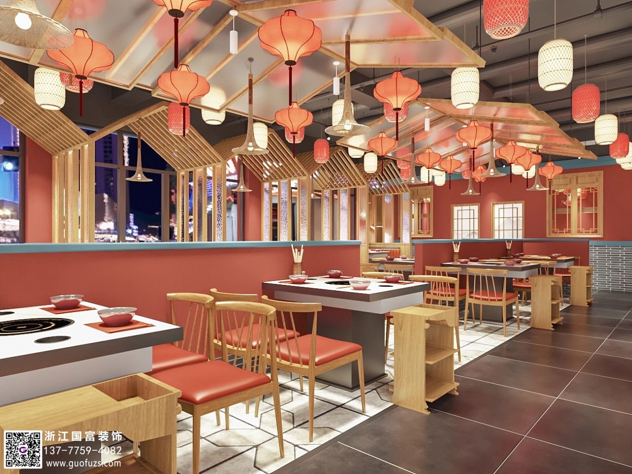 市井老火鍋店裝修設計案例效果圖