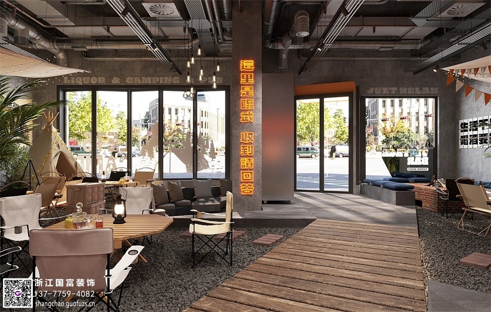美式露營風格小酒館裝修設計案例效果圖