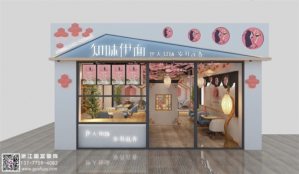 楚味伊人面館裝修設計案例效果圖